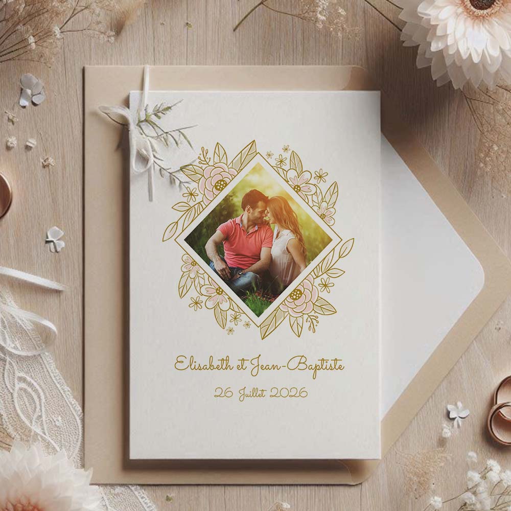 Un modèle intemporel, idéal pour annoncer un mariage élégant, naturel et plein de tendresse.